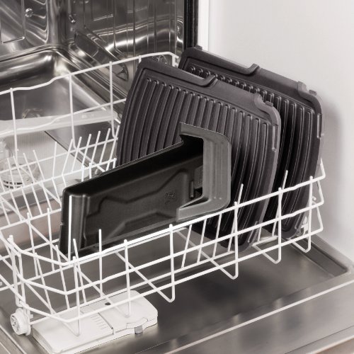 Key features Non-stick coated die cast aluminium plates Easy to use the 2 plates are identical and interchangeable Healthy cooking as non-stick coated cooking plates avoids the need for additional fat Extra large capacity drip tray efficiently drains away fat and juices Easy to clean thanks to the removable dishwasher safe cooking plates and drip-tray Vertical compact storage – cord storage Adjustable thermostat and ready to cook light